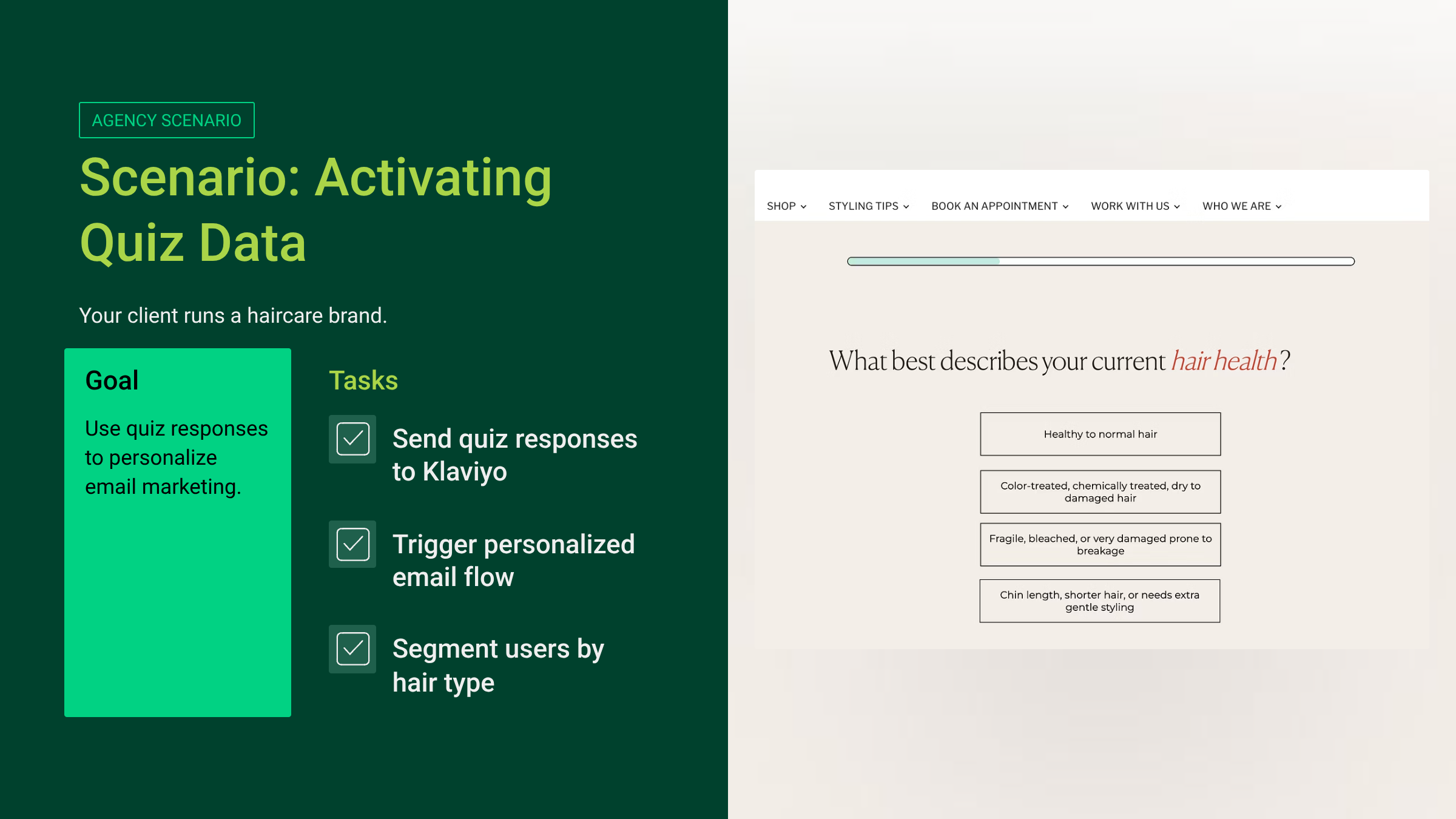 The brand launches a quiz asking visitors about their hair type, styling goals, and product preferences.